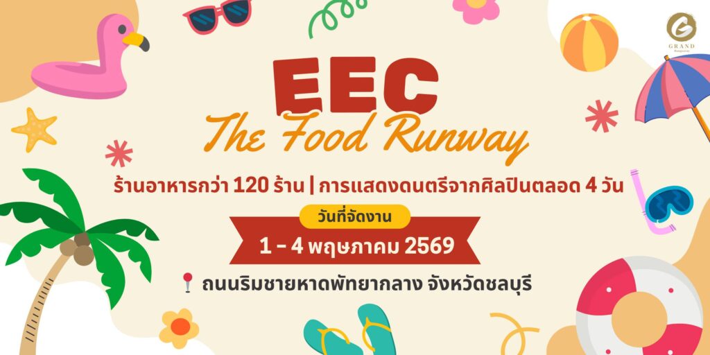 ช่วงต้นเดือนพฤษภาคมนี้ ใครกำลังมองหาทริปเที่ยวกินริมทะเลแบบจัดเต็ม ต้องไม่พลาดงานใหญ่แห่งปี สีสันตะวันออก 2569 – EEC The Food Runway เทศกาลอาหารสุดยิ่งใหญ่ของภาคตะวันออก ที่ยกขบวนความอร่อยมาไว้ริมชายหาดสุดฮิตของเมืองท่องเที่ยวอย่าง Pattaya บรรยากาศดี ลมทะเลเย็น ๆ เดินกินเพลิน ๆ พร้อมเสียงดนตรีและแสงไฟยามค่ำคืน