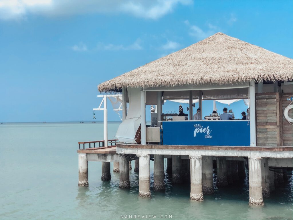 The cafe protrudes into the sea. There is a long wooden bridge. The shop is designed in the style of a Balinese cottage. beautiful design Comes with a 360 degree sea view 🌴🏖️ Good atmosphere and super chic. As for the seats, there are many corners, including tables, chairs, cushions, or hanging legs. and a popular corner like a net cradle Sipping a glass of cold drink Listen to the sound of the waves crashing, feel the sea breeze, sit and enjoy all day.