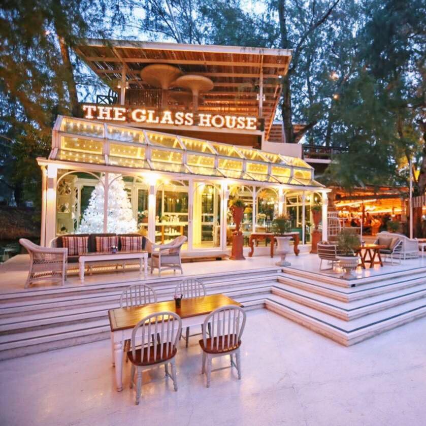 the glass house Pattaya is both a restaurant and a cafe located by the sea, a private beach. and the atmosphere inside the store The shop is decorated in tones that focus on white that looks comfortable on the eyes. and has wooden furniture and there are trees around the shop Makes the interior of the shop feel shady from the trees that line the beach It’s like going into a garden by the sea. as long as the eye can see with the atmosphere that constantly blows throughout the year from the sea breeze day and night and listen to the sound of the waves crashing against the shore.